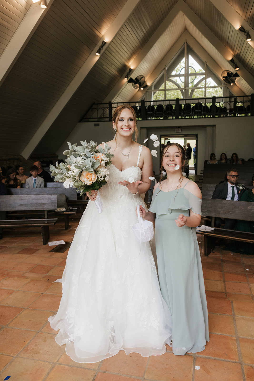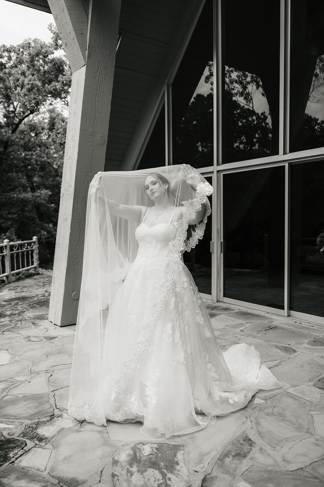 These two said “I do” at Camp Loughridge’s Kirkland Chapel, one of the most peaceful and beautiful ceremony spots in Tulsa. The day came with a little weather drama rain moved in and out but honestly, it made things even better. During their private vows and first look, the clouds broke open and gave us full sun for portraits (exactly what Abigail had been hoping for!). That combo of stormy skies and bright sun made for some seriously stunning photos.