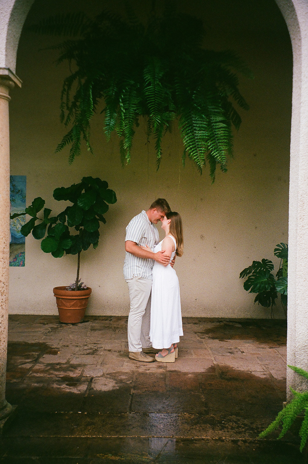 Sometimes the best moments happen when things don’t go exactly as planned and Abigail & Aidan’s engagement session at the Philbrook Museum in Tulsa Oklahoma was the perfect example of that! They had traveled all the way from Oklahoma City for their session, and the forecast said the rain would clear up just in time. But halfway through shooting at the museum gardens, the sky had other plans. It started pouring. Instead of running for cover, these two embraced it completely. They danced, laughed, and leaned into the moment, and it ended up being one of the most joy-filled, romantic sessions ever!