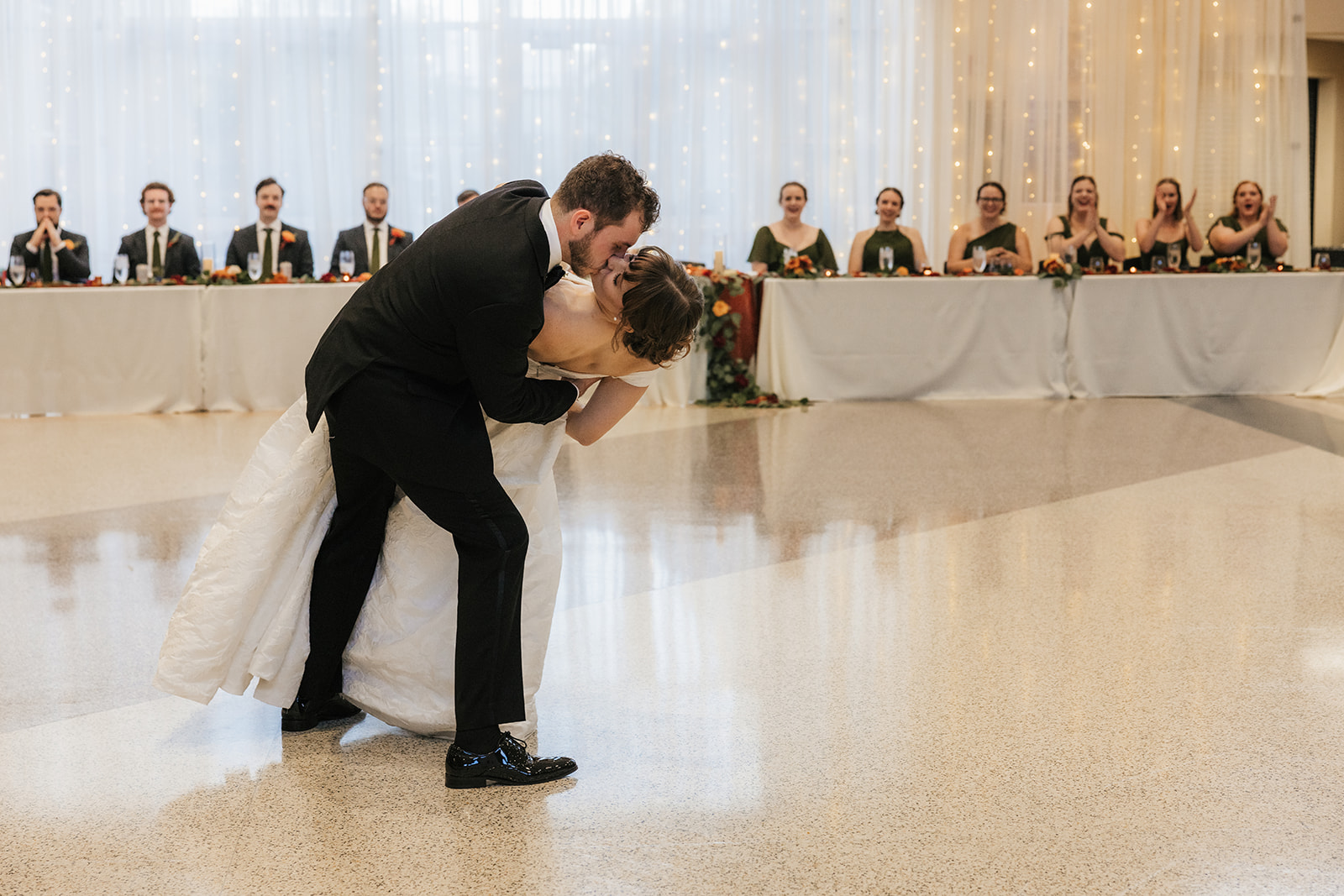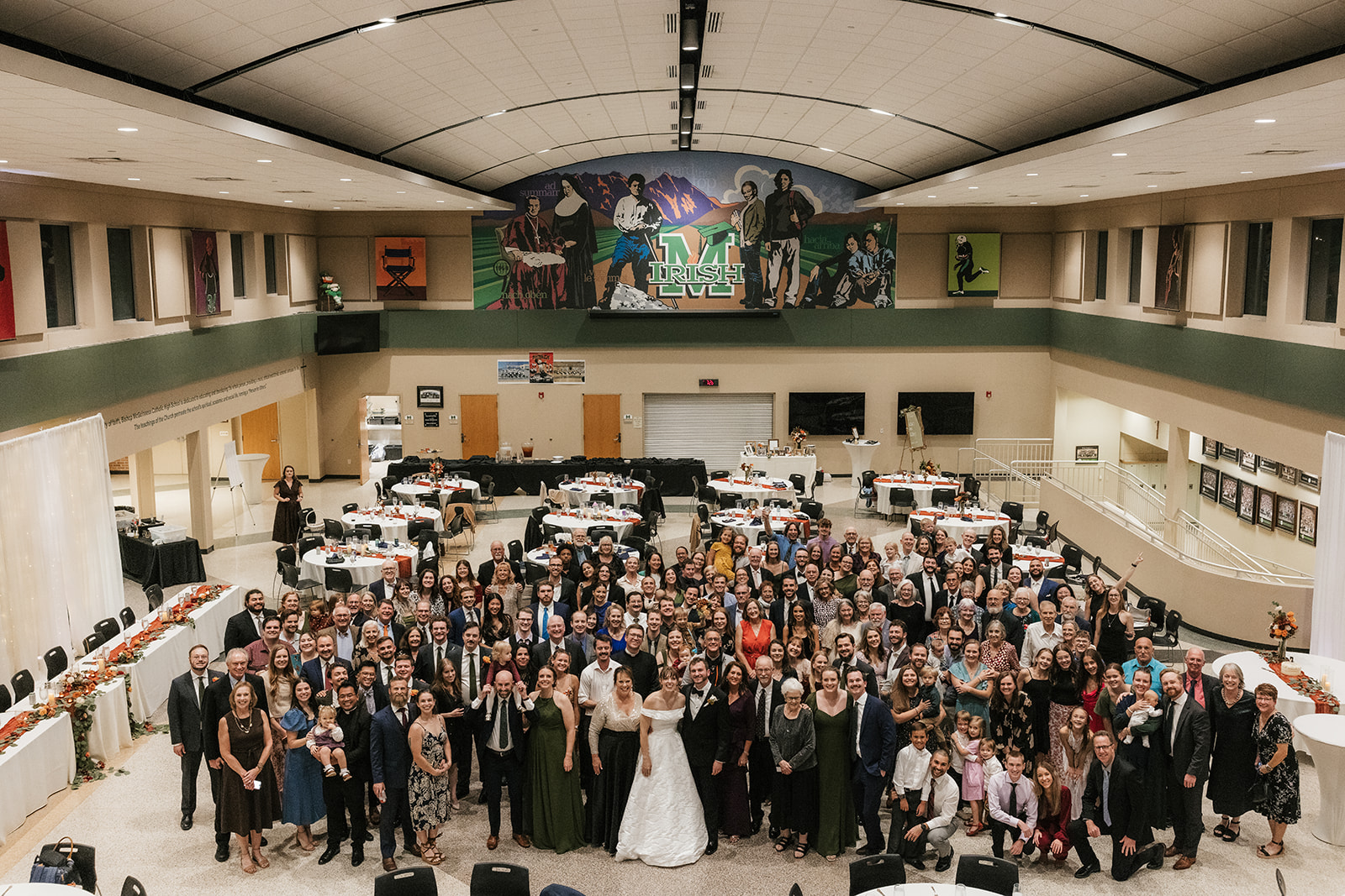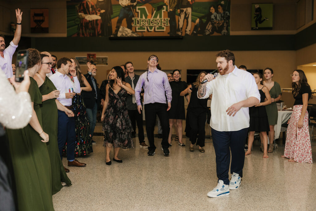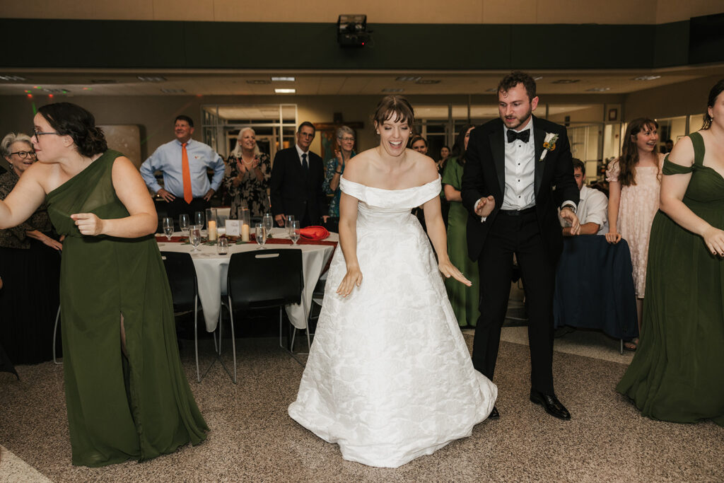 Their original reception venue in Automobile Alley unexpectedly fell through when the owner sold the building! This left them without a venue two months before their huge fall wedding date (10/25/25!). After 67 phone calls with no luck, Abbey’s sister reached out to her school, and Bishop McGuinness Catholic High School opened its doors. It turned out incredible!