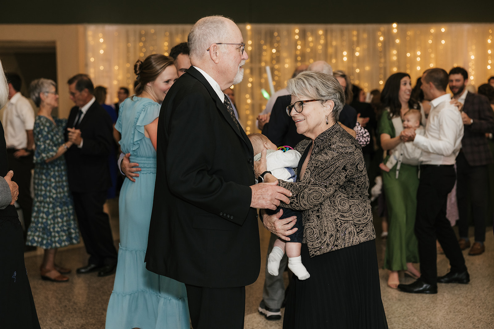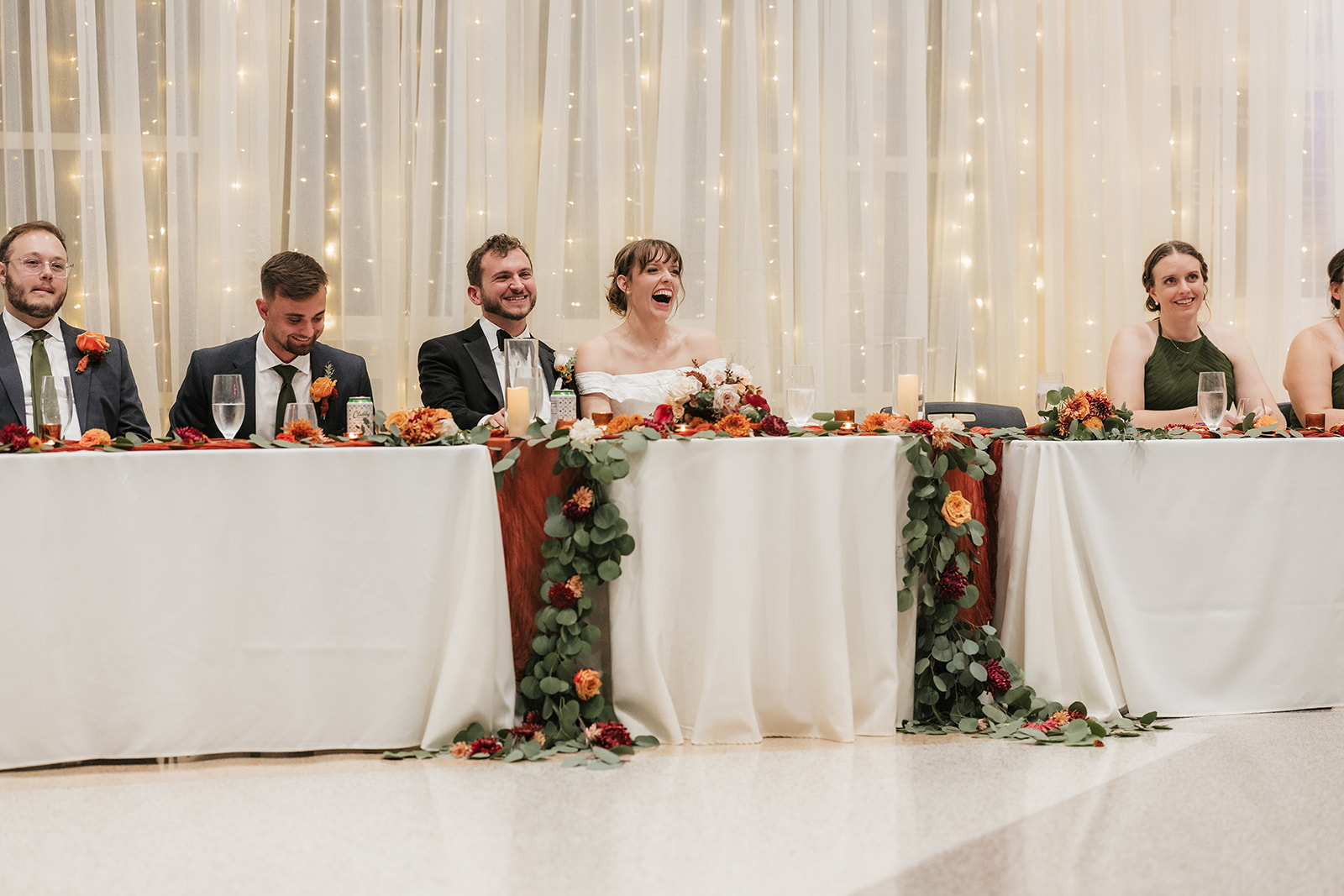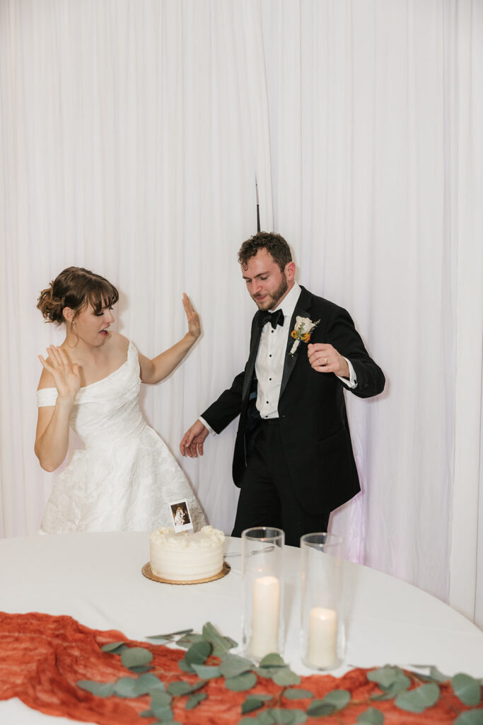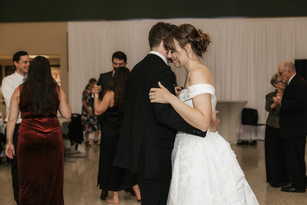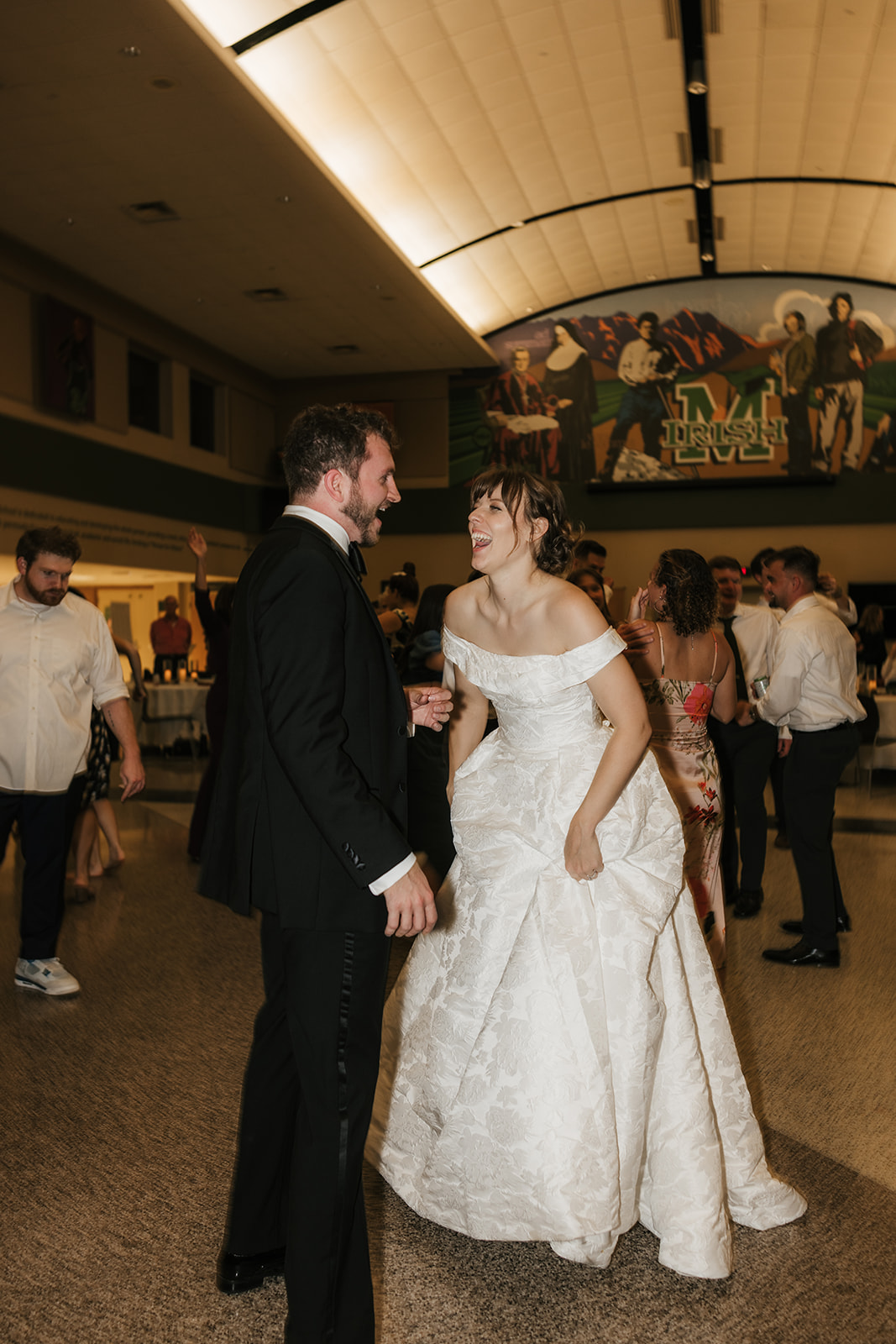 Their original reception venue in Automobile Alley unexpectedly fell through when the owner sold the building! This left them without a venue two months before their huge fall wedding date (10/25/25!). After 67 phone calls with no luck, Abbey’s sister reached out to her school, and Bishop McGuinness Catholic High School opened its doors. It turned out incredible!
