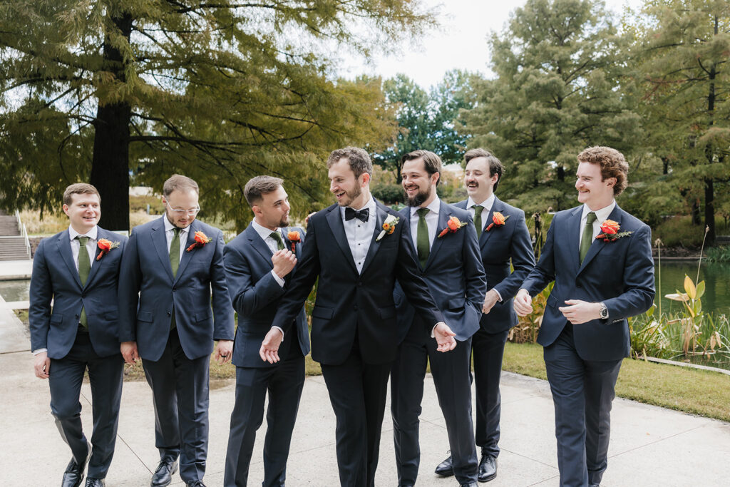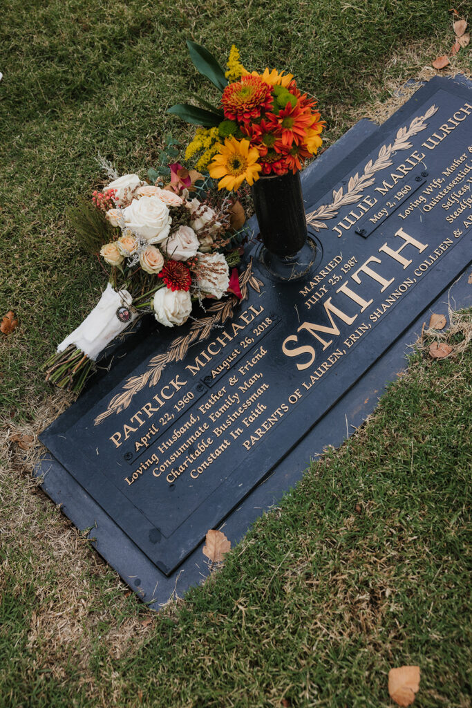 Like many Catholic weddings, Abbey & Adam had a “Catholic gap” three hours between the end of Mass and the start of the reception. Our first stop was Abbey’s dad’s resting place. She left him a bouquet, and we took portraits with her family. It was emotional, reverent, and such a sacred moment to capture. Next, we visited her dad’s shop a family business they still run. Taking photos under the Pat’s Auto sign with everyone together was such a beautiful tribute! Then we headed to the Wheeler District for portraits and we wrapped up at Myriad Gardens.